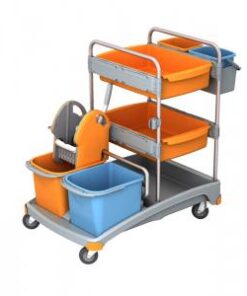 Επαγγελματικό καρότσι διπλό με υποδοχή και καπάκι για σάκο απορριμάτων