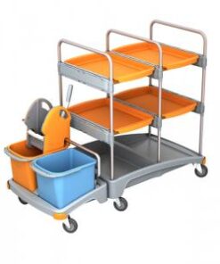 Επαγγελματικό καρότσι διπλό με υποδοχή και καπάκι για σάκο απορριμάτων